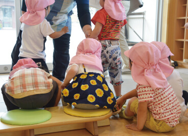 入園。初めての社会生活が楽しくなるように、たくさんのおともだちができるように、愛情いっぱいのこども園を目指しています。