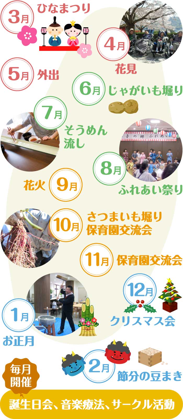 誕生日会など月の恒例行事や季節ごとの行事など、様々な行事を行っております。